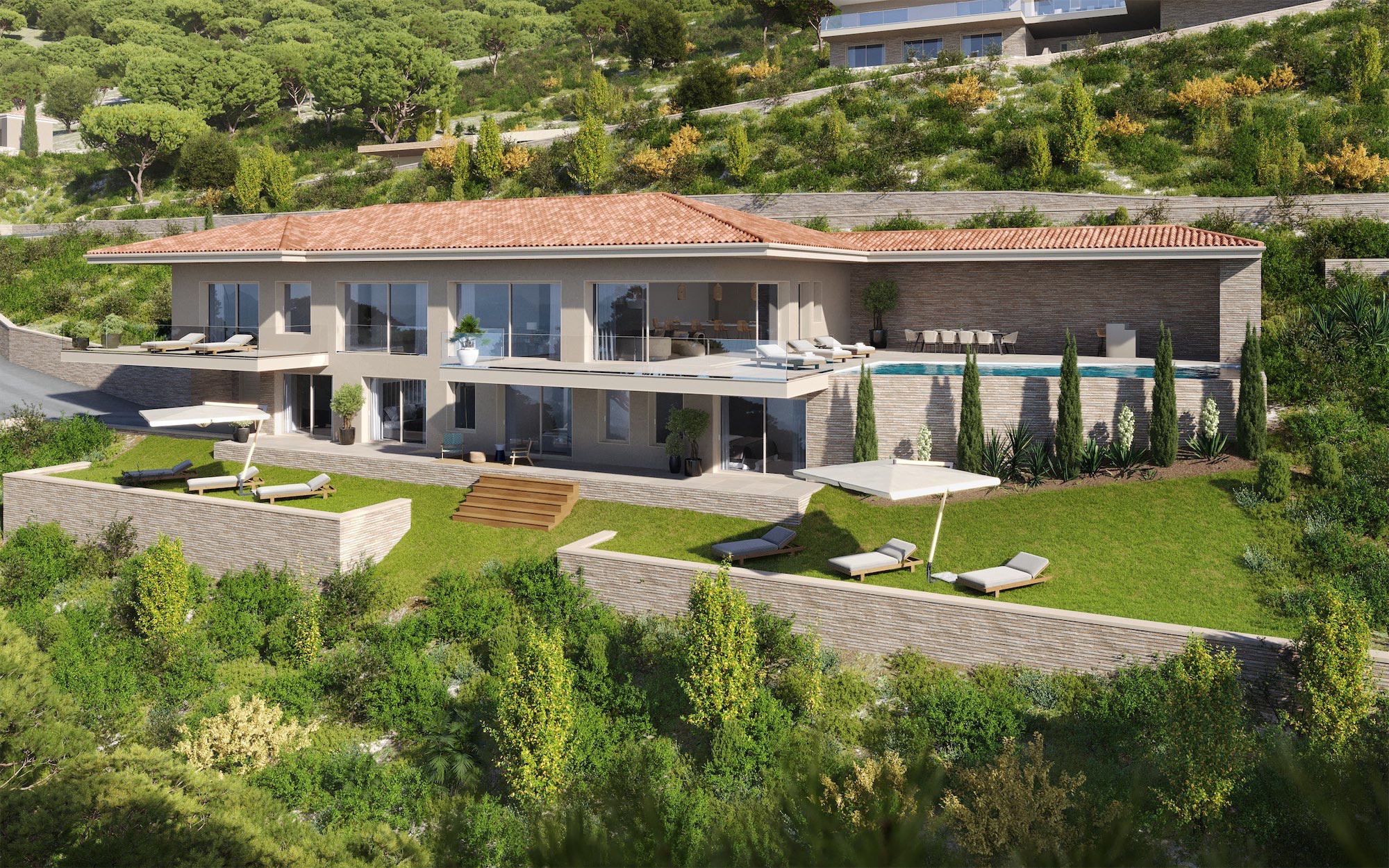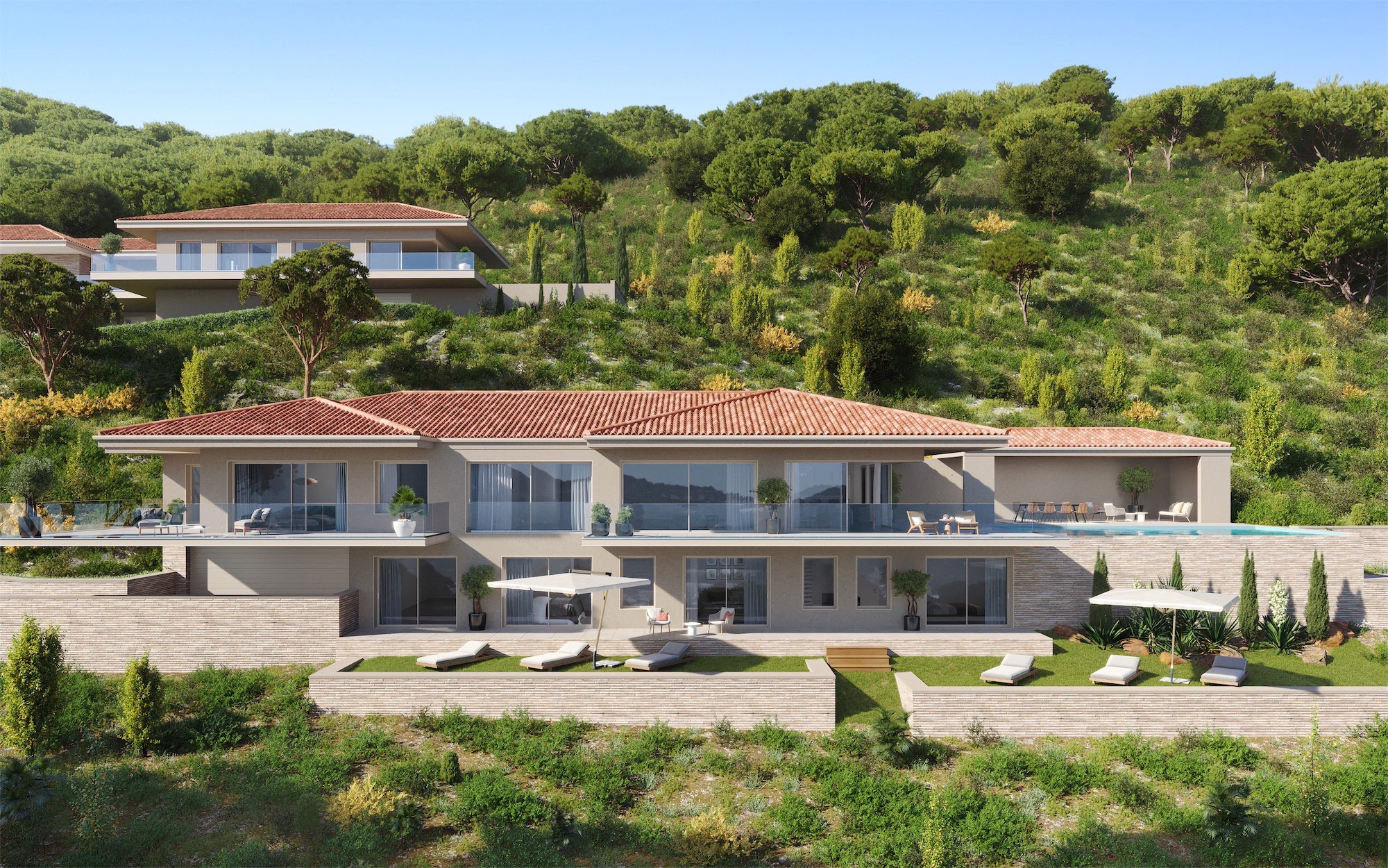 Nine high-tech designer villas with five or six bedrooms, each with a unique design, built on large plots offering full privacy. The design of the villas fits perfectly in this beautiful natural environment. The large glass facades provide a lot of natural light into the villas and optimize the amazing sea views. Outside you will find large terraces with a beautiful infinity pool surrounded by a beautifully landscaped garden full of Mediterranean vegetation. The finishing of the villas will be of the highest standard and you will have plenty of space to personalize the interior and design the villa to your own taste. Due to the spacious plots and the height differences in the landscape, complete privacy and unobstructed panoramic sea views of each villa are fully guaranteed. The villas are located in a unique place in Grimaud Beauvalon. A wonderfully peaceful green environment where you can enjoy all the beauty that the South of France has to offer in complete privacy and security.